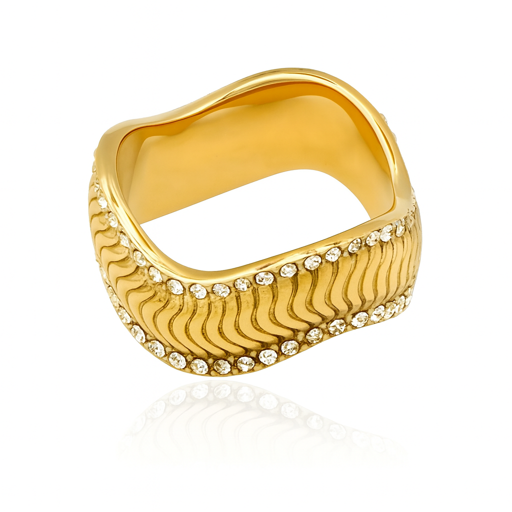 Το εντυπωσιακό δαχτυλίδι "Shy Di" με το ιδιαίτερο σχήμα του και τις μικρές zircon πέτρες του, ήρθε για να σας μαγέψει. Ιδανικό να φορεθεί μόνο του αλλά και σε συνδυασμό με άλλα δαχτυλίδια.