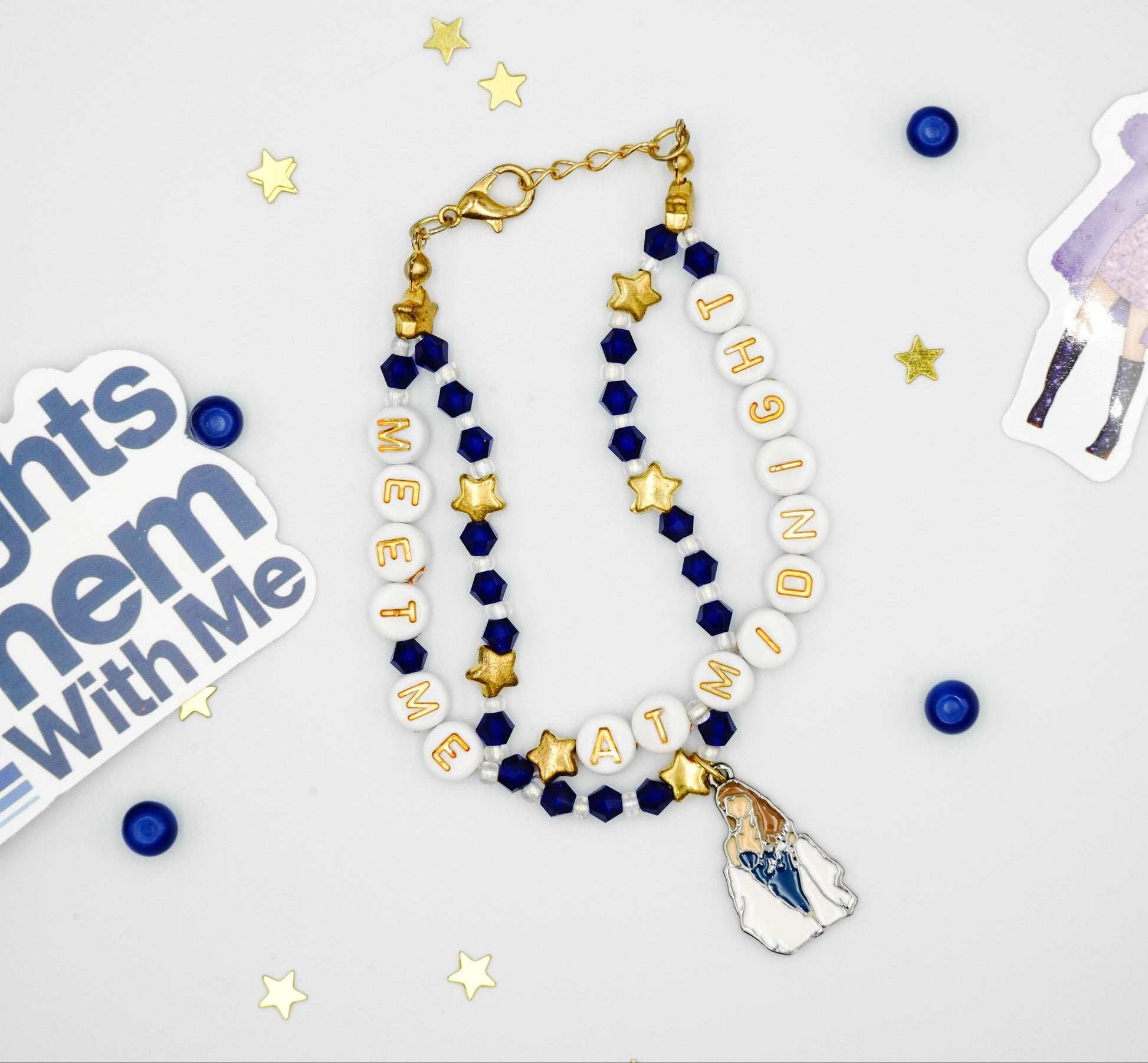 Handmade friendship bracelet, inspired by the Midnights feauturing a Taylor charm!