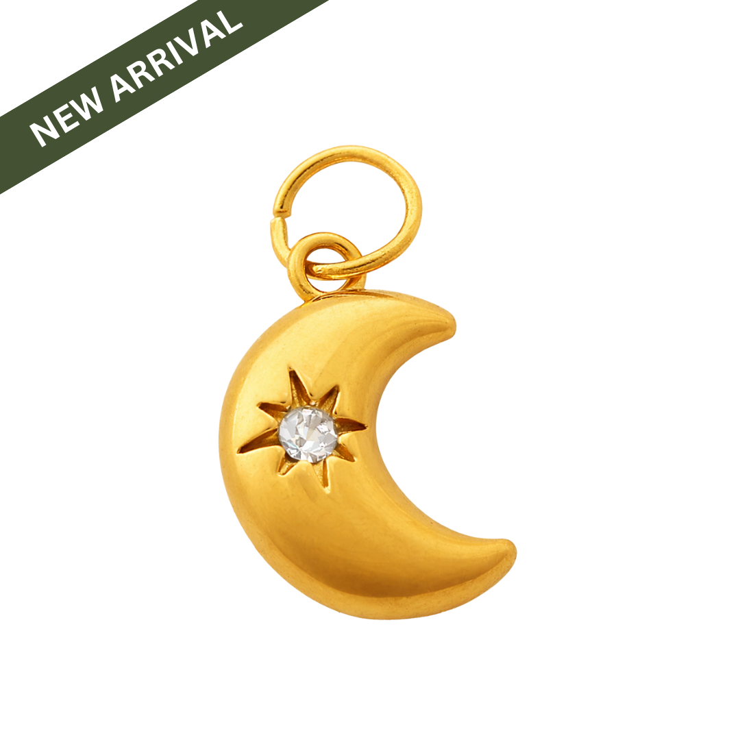 A half moon  charm with a white stone, inspired by the album "Folklore".