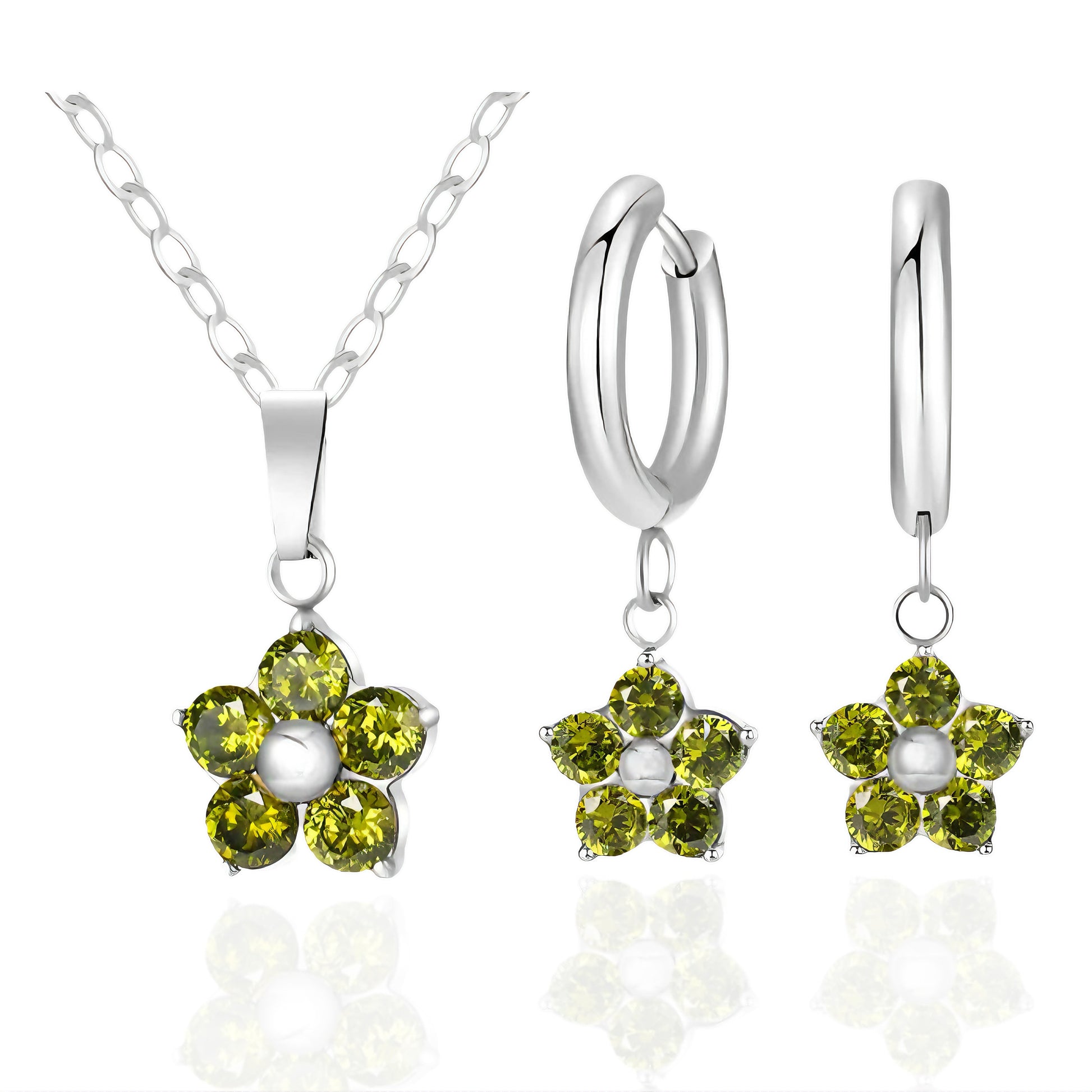 The Debut - Silver Set (From The Vault) includes a necklace and earrings featuring sparkling green zircon flowers, inspired by Taylor Swift's first album.