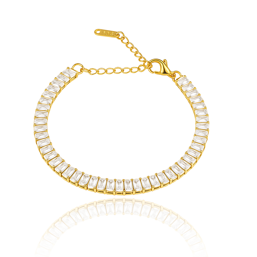 The dazzling "Frances" bracelet can be worn alone or paired with other bracelets. Its stunning stones are sure to catch attention.