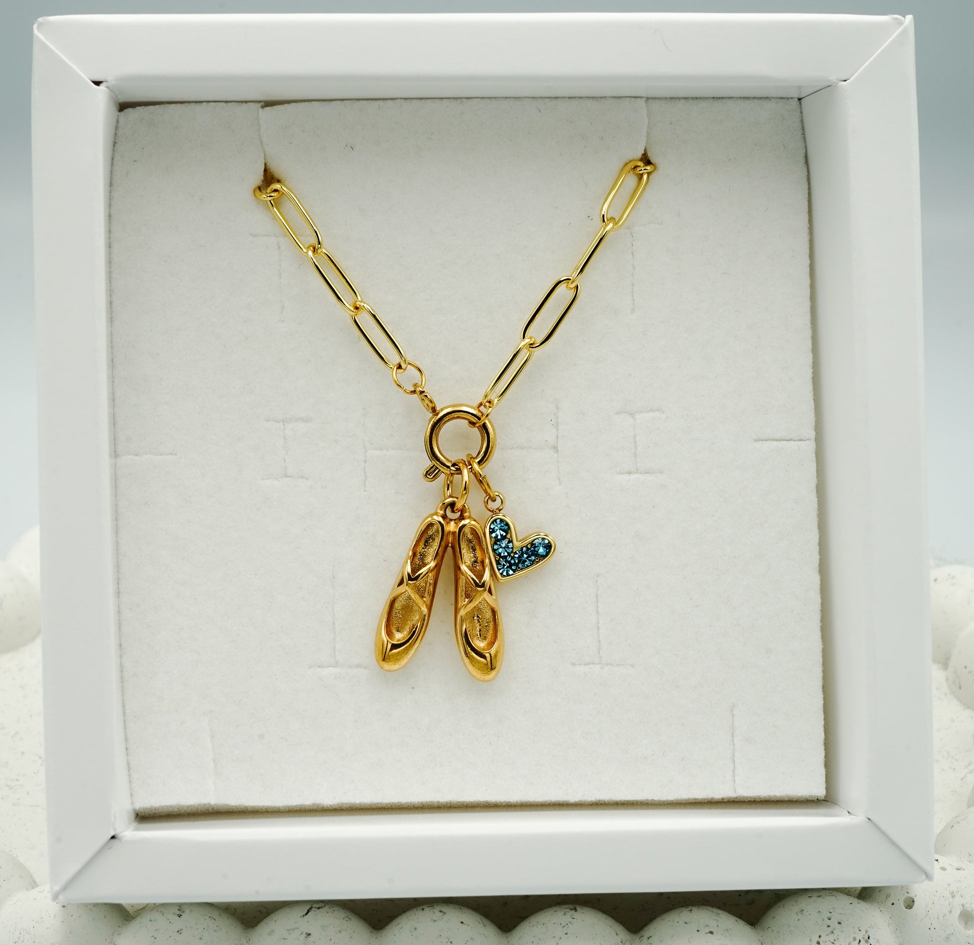 A charm with pointe shoes, inspired by Taylor's ballerina outfit in the Shake It Off music video.