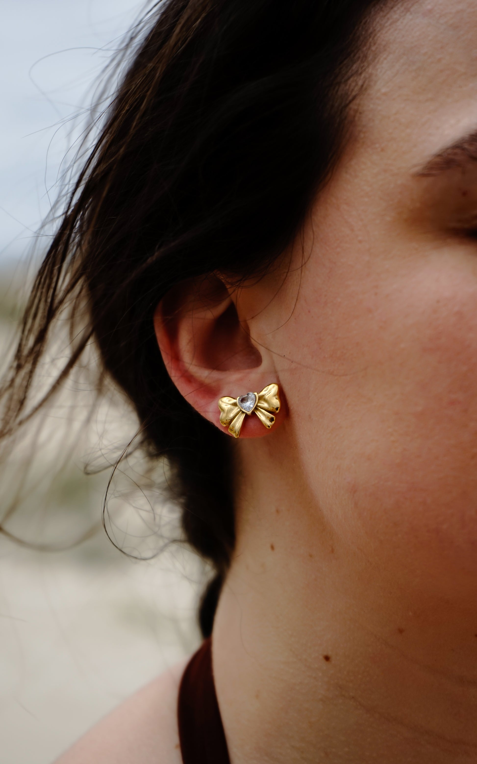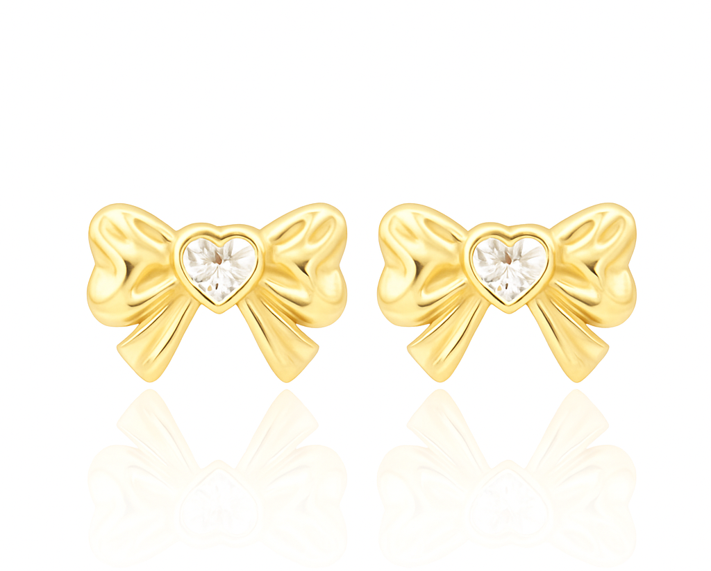 The most exquisite set of bow earrings has arrived to captivate you! Adorned with a white heart center and a dazzling finish, these are guaranteed to become your cherished jewels.